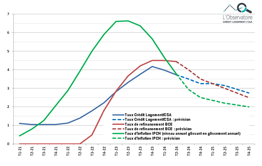 Puis la baisse des taux se poursuivrait en 2025 (3.03 % en niveau annuel moyen et 2.75 % au T4-2025).